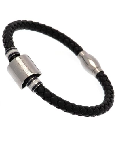 - Black bracelet featuring stainless steel colour rings and an engraved Scottish FA crest