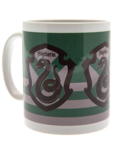 - Features a repeat pattern of the Slytherin house crest on a green and grey striped background