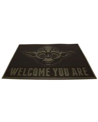 - Black rubber doormat featuring an image of Yoda and the text Welcome You Are