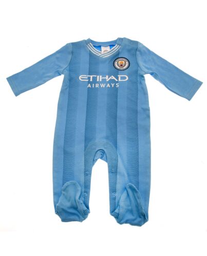 - This long sleeved baby sleepsuit features the famous sky blue home colour of Man City