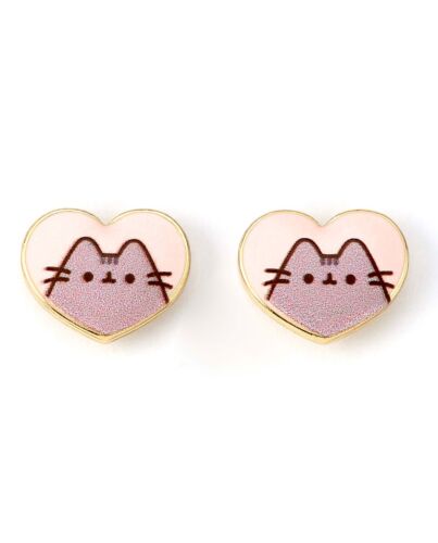 Pusheen Gold Plated Heart Stud Earrings