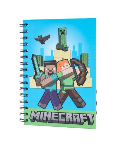 - Featuring Minecraft characters on the front cover with Minecraft branding on the inside cover
