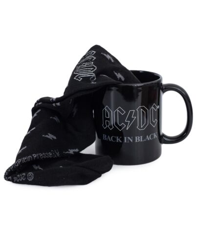 - Black mug and socks both featuring the iconic "Back In Black" album design