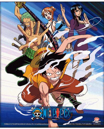- Features a moving image of Luffy and the Straw Hat Crew in action
