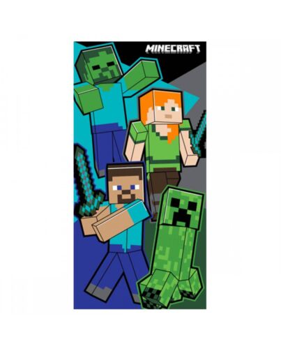 - Multi-coloured towel featuring key characters from the Minecraft world