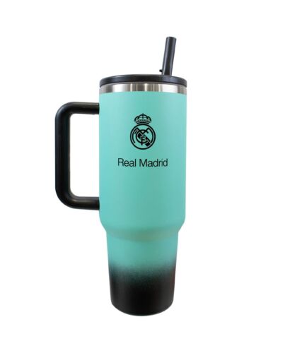 - Mint green 40oz thermal tumbler, ideal for Real Madrid fans of all ages