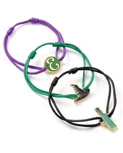 - Elphaba logo, witch hat and potion features on adjustable cord bracelets of green, purple and black