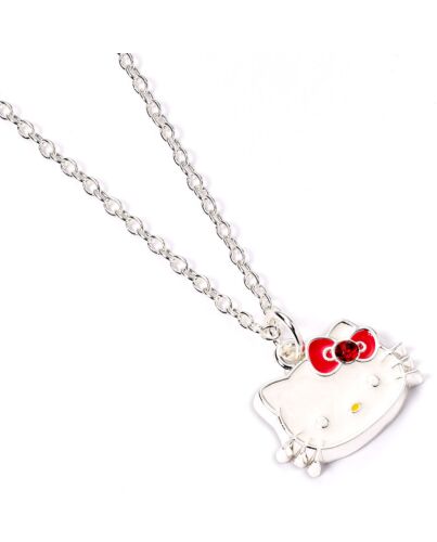 - A Hello Kitty charm on a silver plated necklace